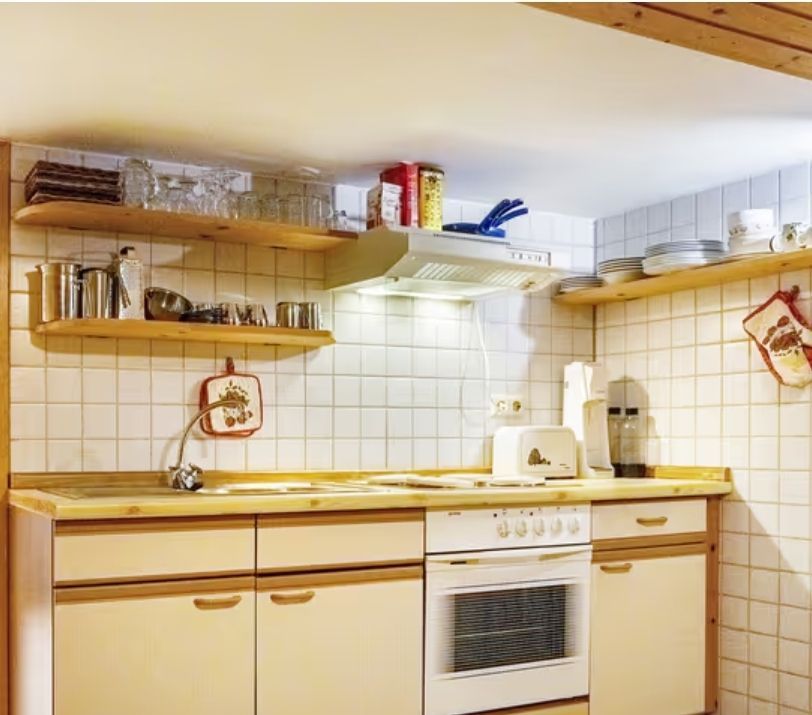 Vajilla y utensilios de cocina. Paños de cocina, agarraderas, ollas, sartenes, frigorífico (con congelador), TV LED (SAT), reproductor de DVD (extra, ¡bajo petición!).